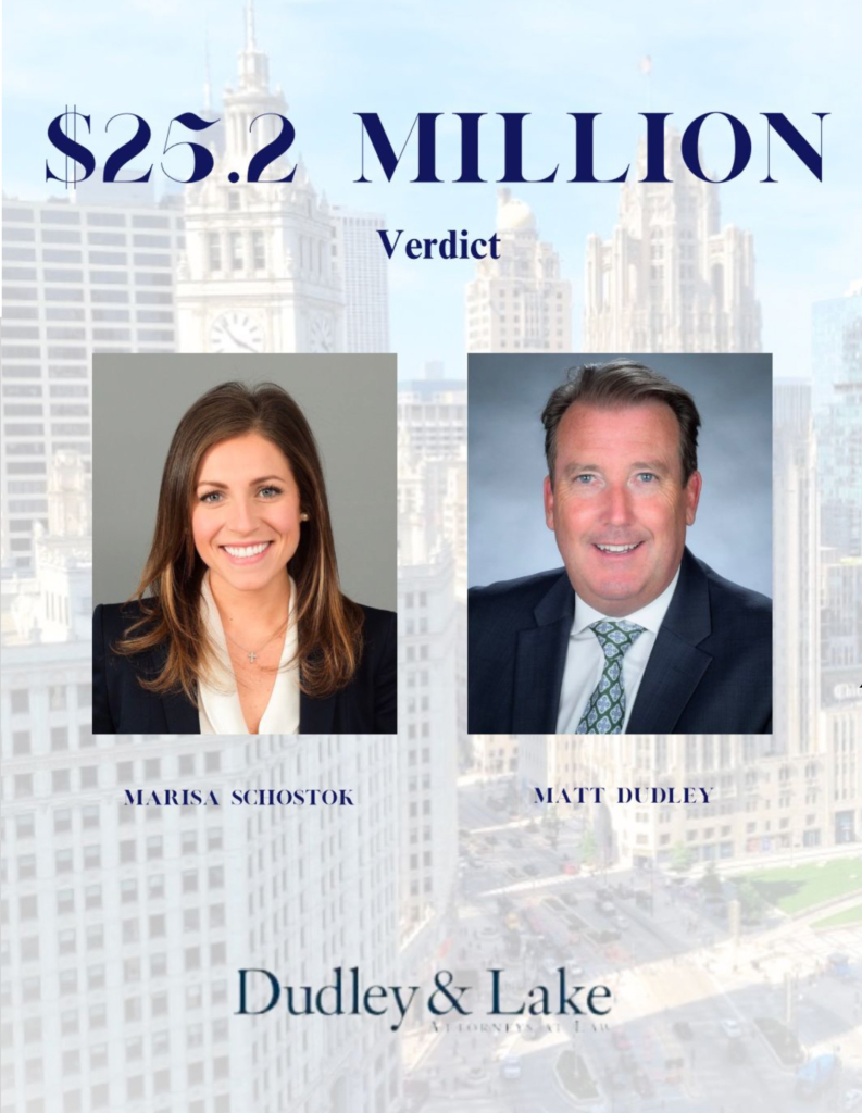 Matthew Dudley and Marisa Schostok represented the Estate of a 55-year-old man who died as a result of septic shock caused by an undiagnosed anastomotic leak following a hernia repair surgery. Following a three-week trial in Cook County, the jury found in favor of the Plaintiff and determined the surgeon negligently discharged the patient from the hospital despite his worsening condition. The jury awarded $25,312,039.59 in damages, which will go to the widow and three children of the decedent. Read more: